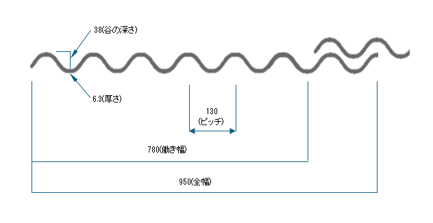 | ルーフ550タイプ葺替用 商品名 | 本体材質 | 入数 (t=3.2) | 図面表示 |